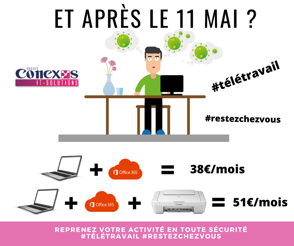 Le 11 mai 2020 marque le début du dé confinement suite à l'urgence sanitaire due au COVID-19 et nombreuses sont les entreprises à se demander comment organiser le retour ou non de ses salariés tout en respectant les consignes et normes de sécurité sanitaire. Dans cette période compliquée, Le Groupe Conexys, vous propose de vous accompagner en vous concoctant une offre sur mesure pour permettre le télétravail de vos salariés. Cette offre est disponible pour Bordeaux et pour tout le département de la Gironde.